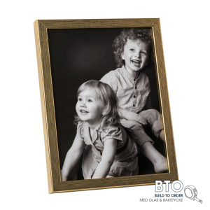 Här hittar du våra populära guldfärgade ramar med både glas och syrafritt bakstycke. Guld är en neutral färg och kan blandas med alla andra färger, med mycket gott resultat. Det gör guld till en mycket gångbar färg till ramar. Alla ramar kan beställas i storlek upp till 30x42 centimeter, även som kvadratiska ramar.