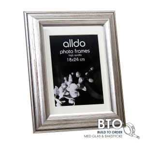 Silver är en populär färg på ramar. Används ofta till svartvita bilder och foton. Färgen är neutral och brukar vara mycket lättplacerad i hem. Levereras med glas och bakstycke i storlekar upp till 30x42 centimeter (A3). Kan även beställas som kvadratisk ram genom att välja samma mått för bredd och höjd.